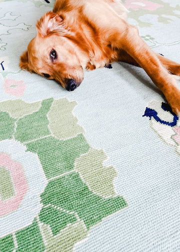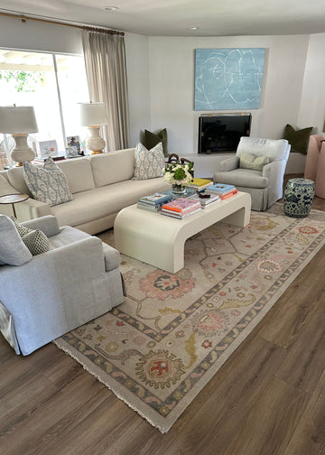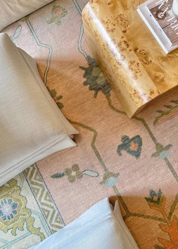 “We LOVE our Milagro rug! We have had other Oushak rugs and even “pet grade” carpet cut into a rug, and nothing has held up like our Milagro rug! Our living room is the busiest place in our house, with our dog and frequent visitors, and stains have lifted easily form the rug and 2 years later it still looks brand new!”