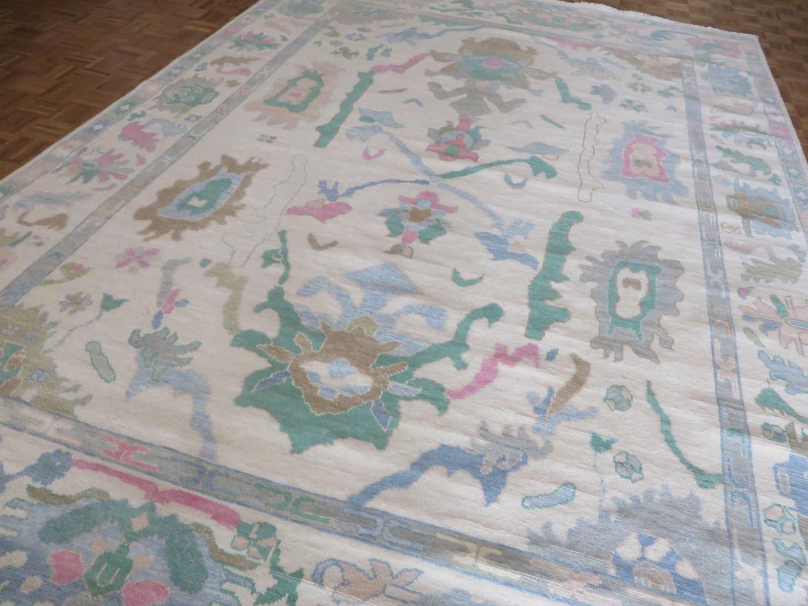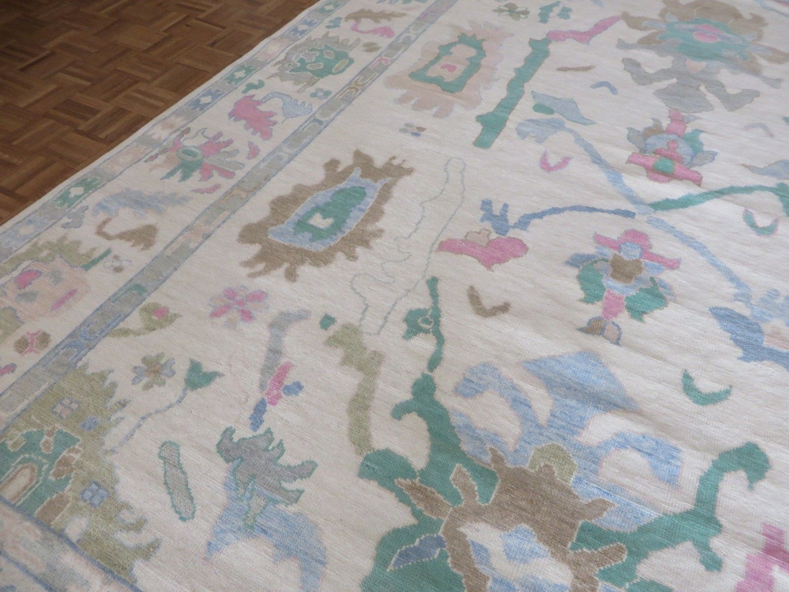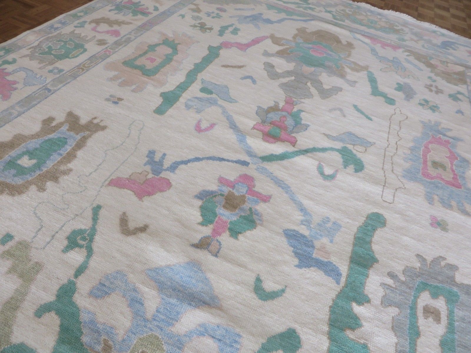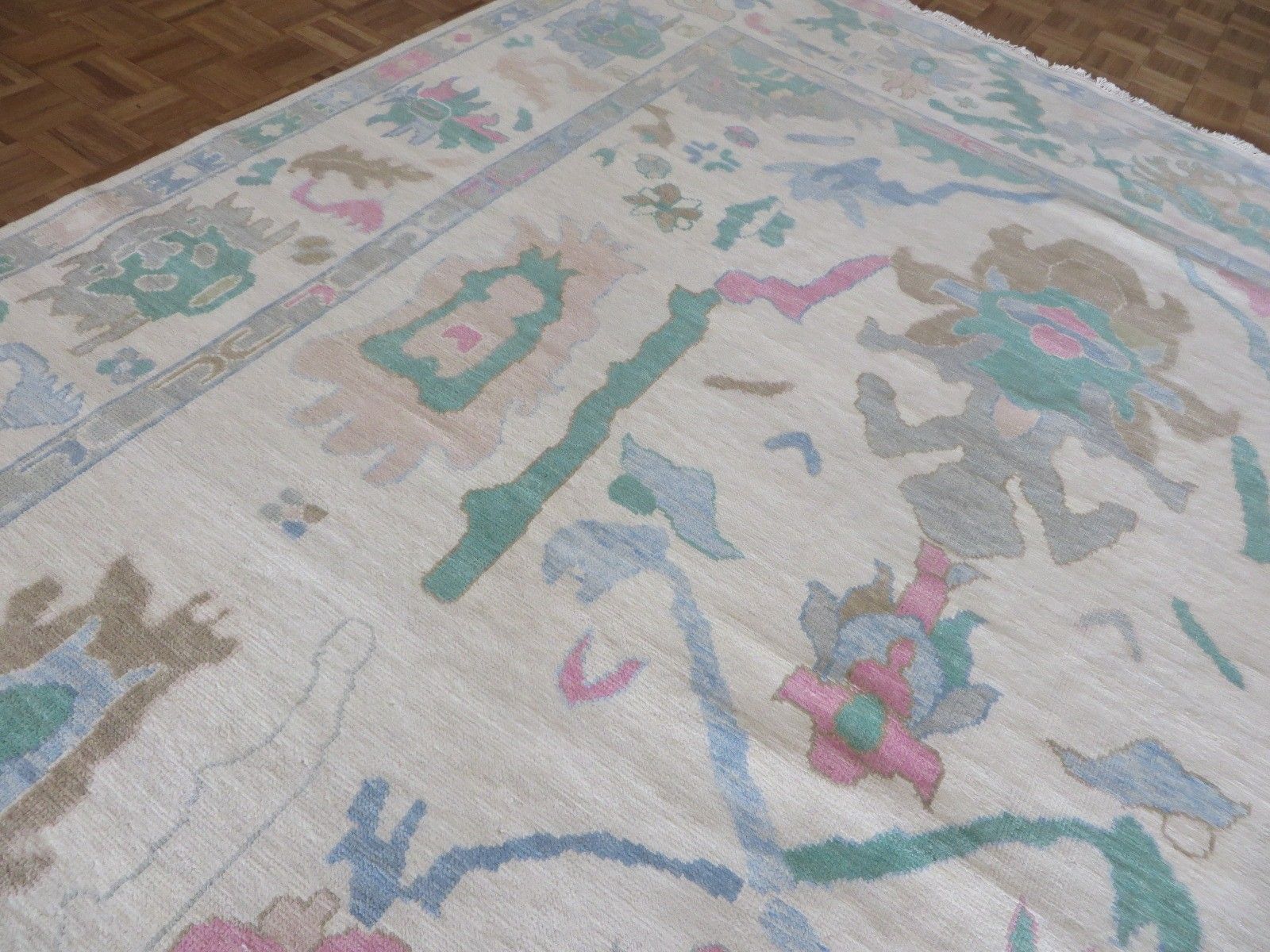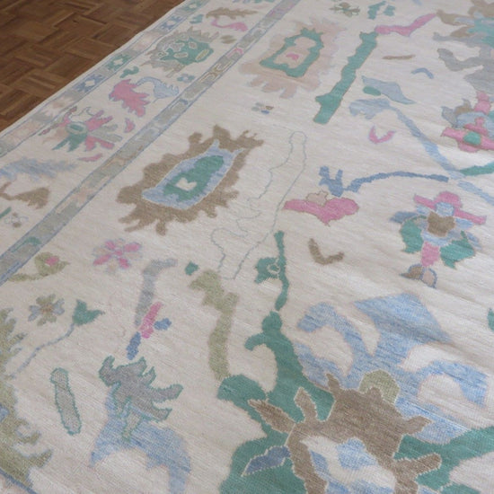 New Production, Modern Hand Knotted Oushak composed of 100% hand spun wool; made of natural and vegetable dyes.