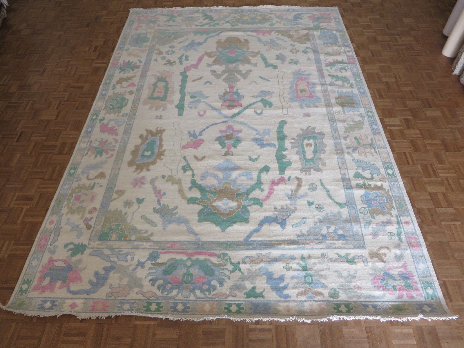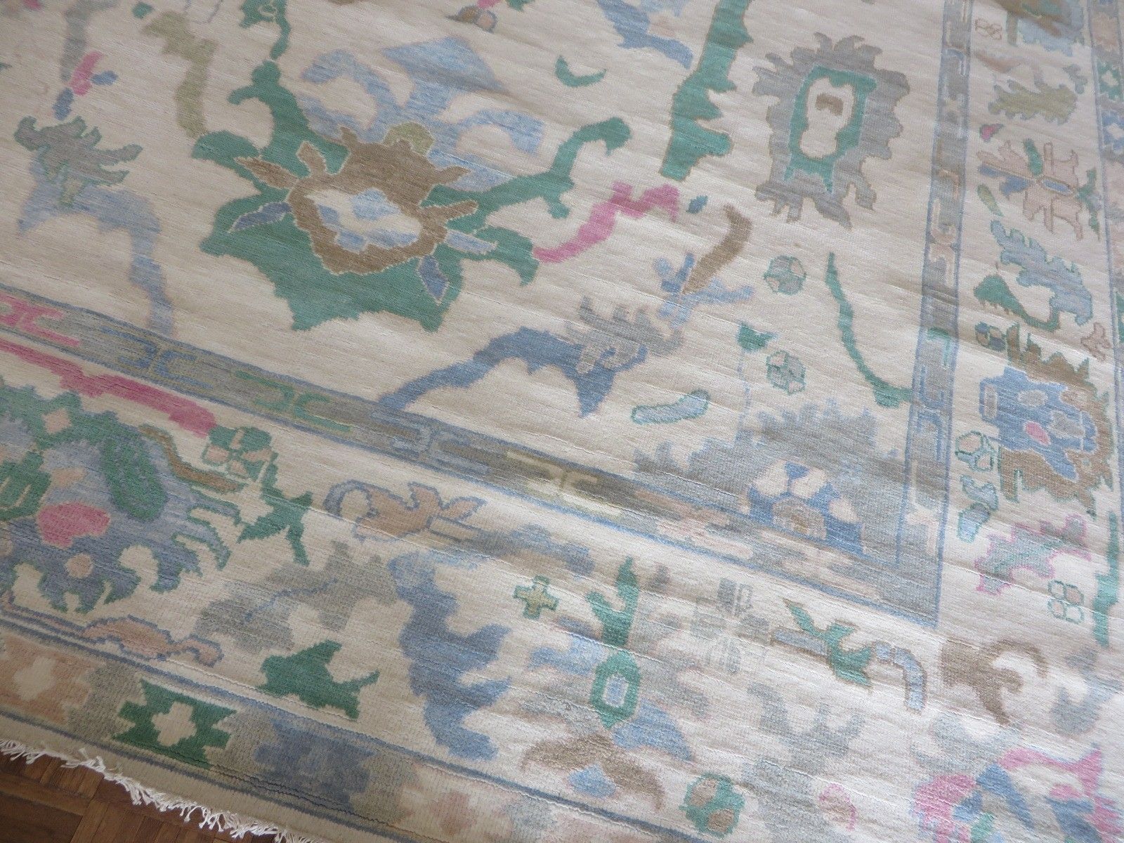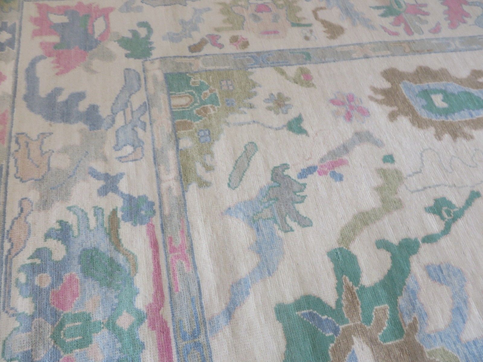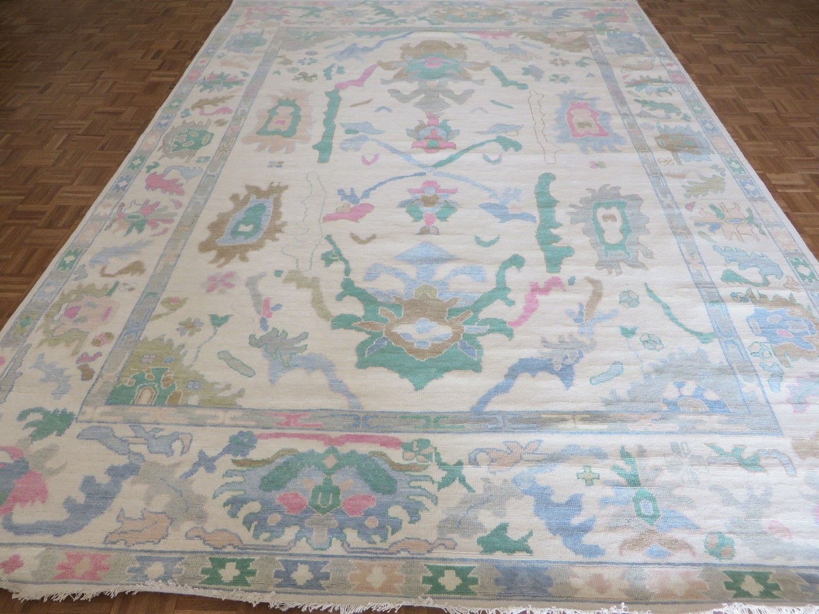 New Production, Modern Hand Knotted Oushak composed of 100% hand spun wool; made of natural and vegetable dyes.