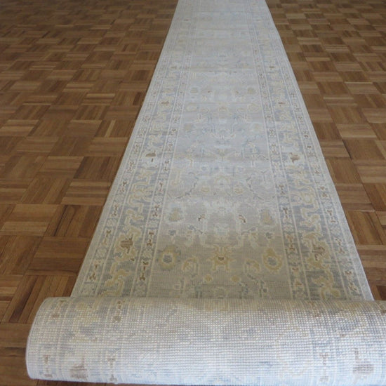 Made to order modern oushak rugs ship in about 90–120 days, with runners and custom sizes taking 120–150 days.