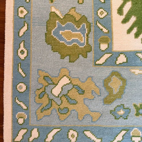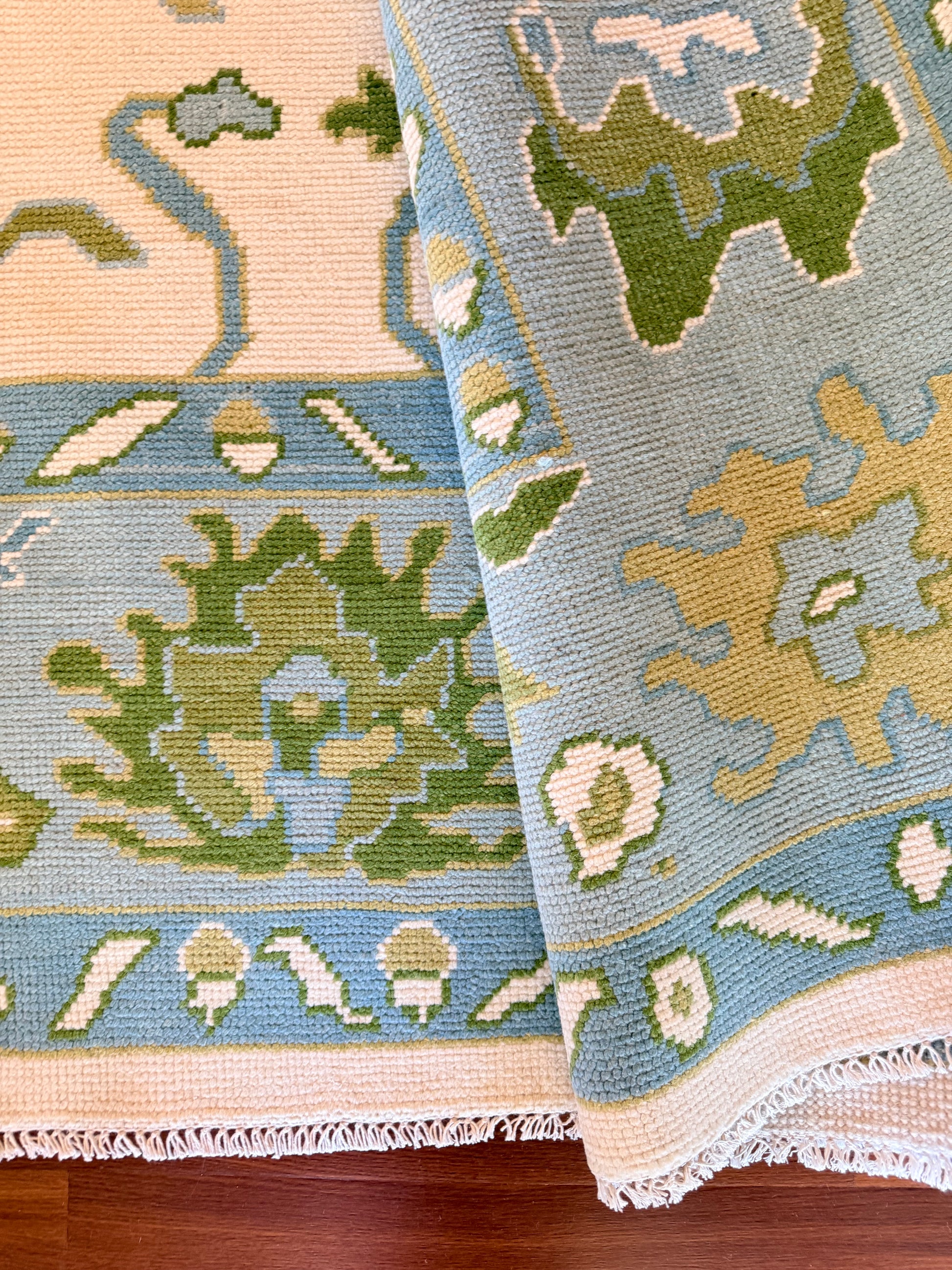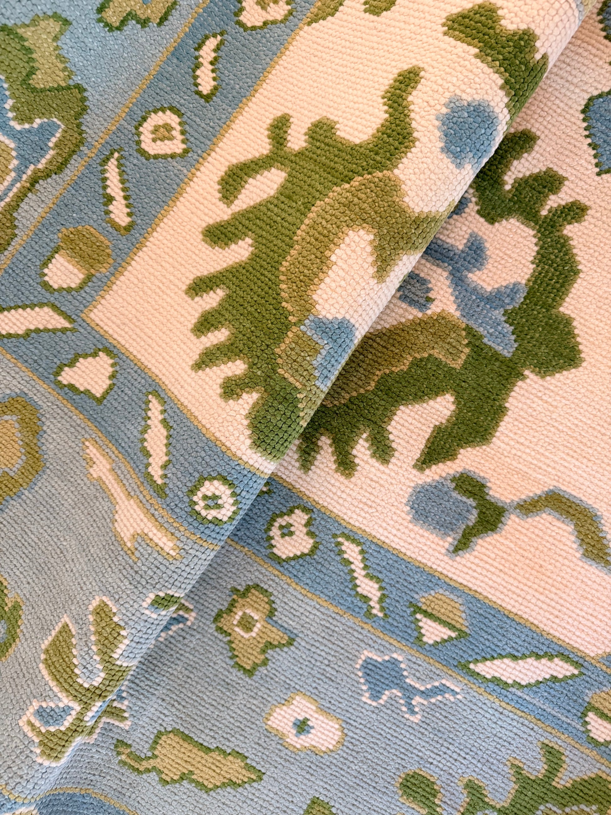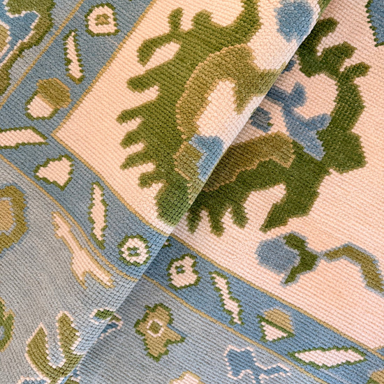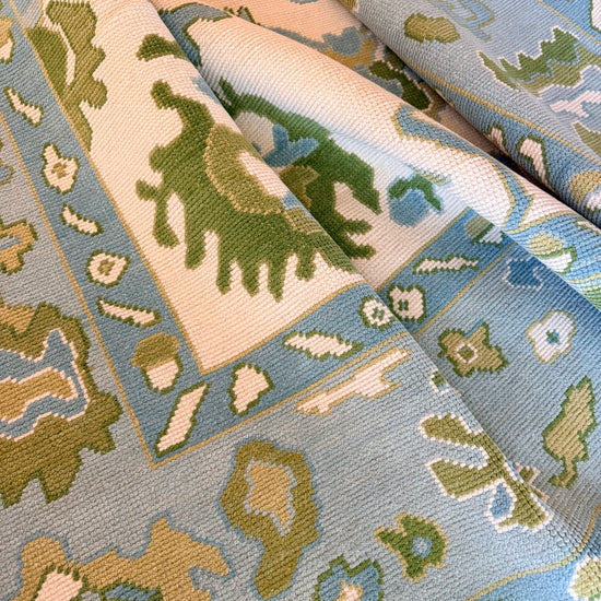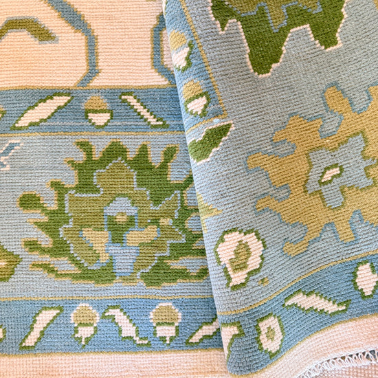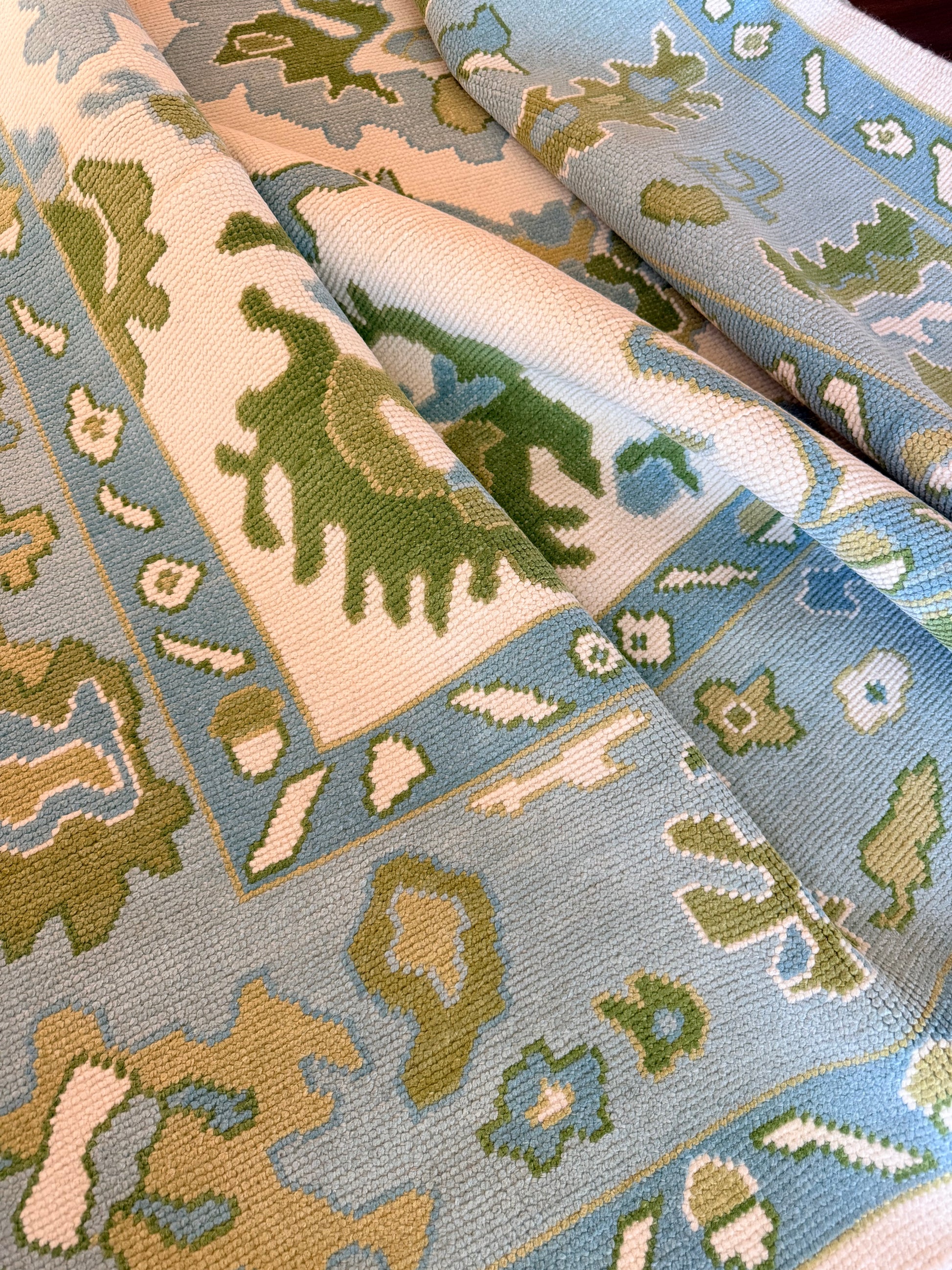 Our Modern Oushak Collection is hand-knotted with the highest quality New Zealand wool and brought to life by third-generation weavers in India who pour love and attention into every detail. Each rug is colored with natural vegetable dyes, giving it rich tones and timeless character. Because every piece is made to order, your rug will ship free within 90–120 days.