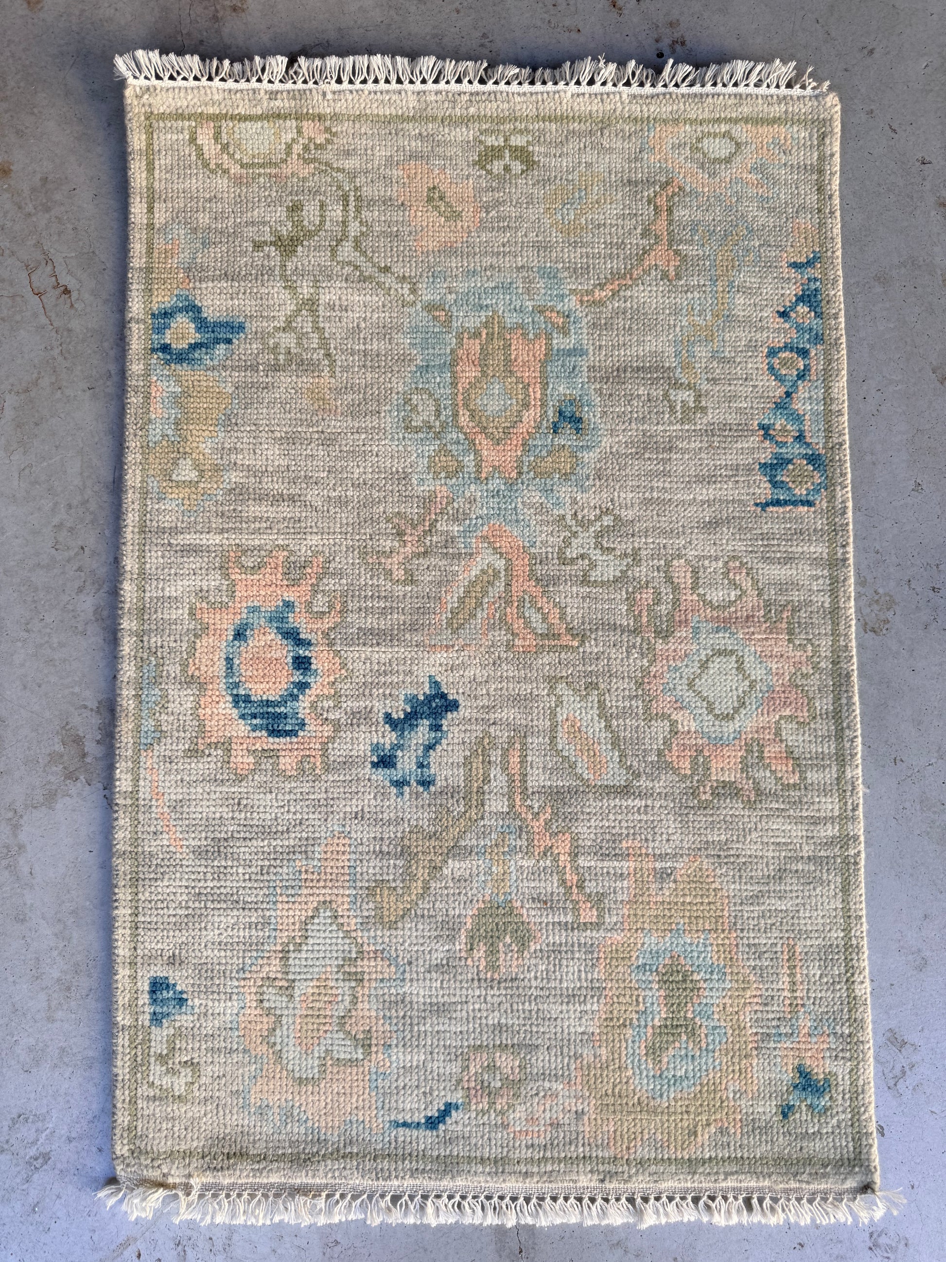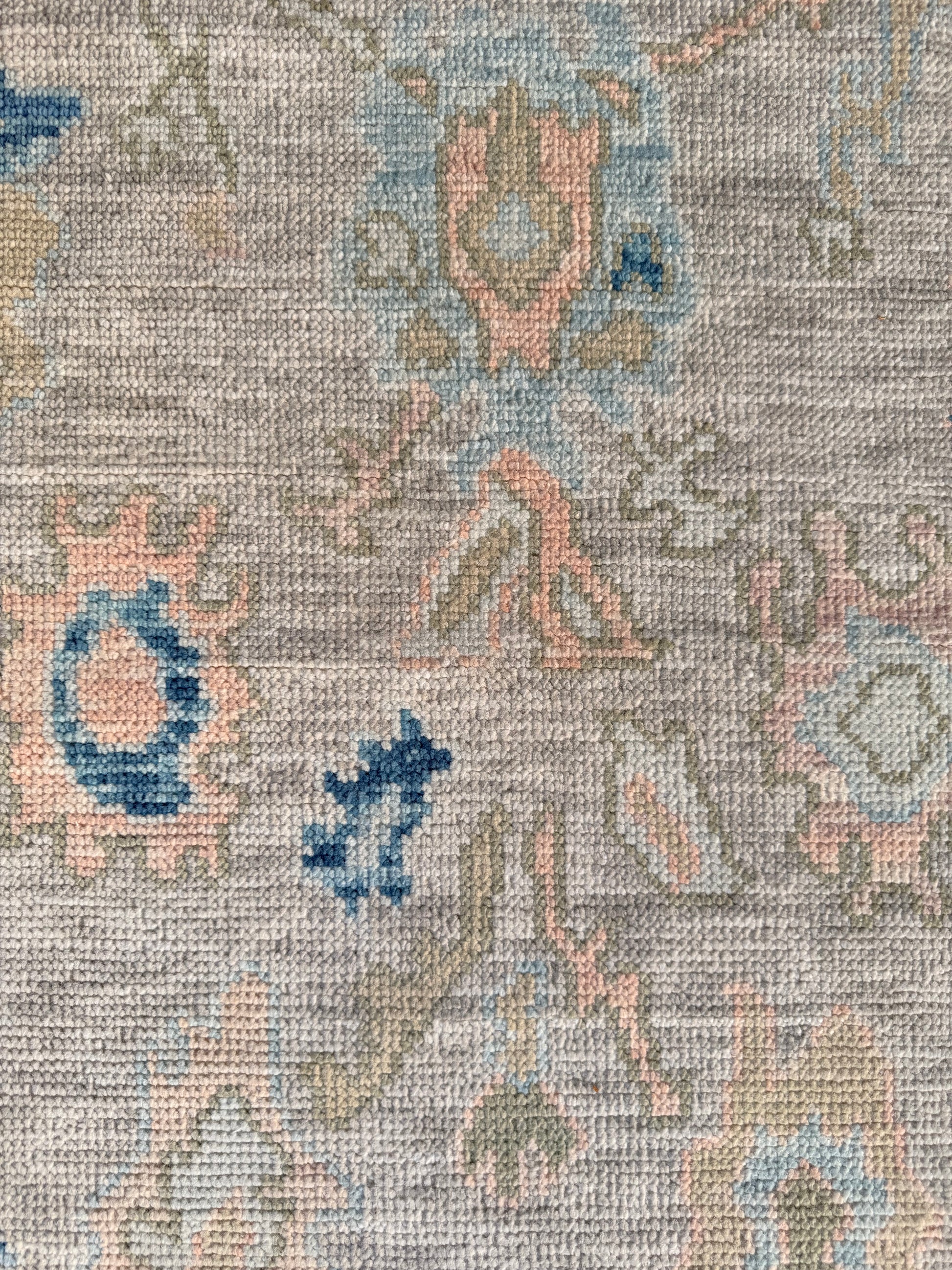 - New production, hand-knotted Modern Oushak rug composed of 100% wool made of natural and vegetable dyes.