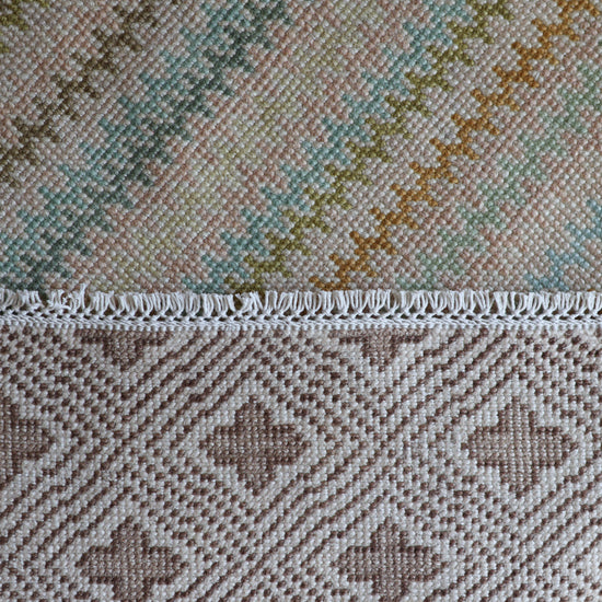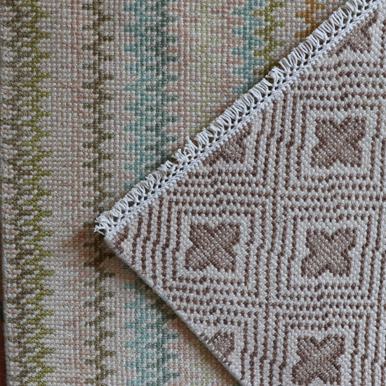 Each of our rugs is handmade in India from natural materials, using techniques passed down through generations. Because they are crafted by hand, every rug has slight inconsistencies or unique details that make it one of a kind. Sizes may vary by 1–3 inches in either direction, and colors may shift by 5–15% from what you see online. Motifs, borders, and patterns also scale with size, so the final piece may differ slightly from photos. These natural variations are part of authentic craftsmanship. All of our rugs are produced responsibly with no child labor, supporting the artisans who create them. To extend the life of your rug, we recommend using a felt rug pad.