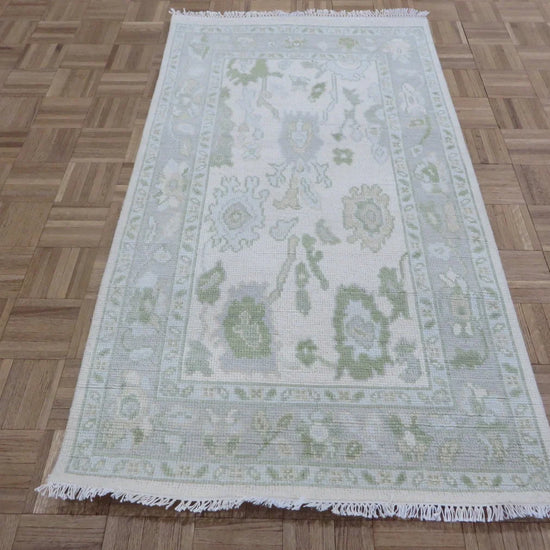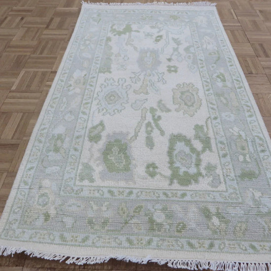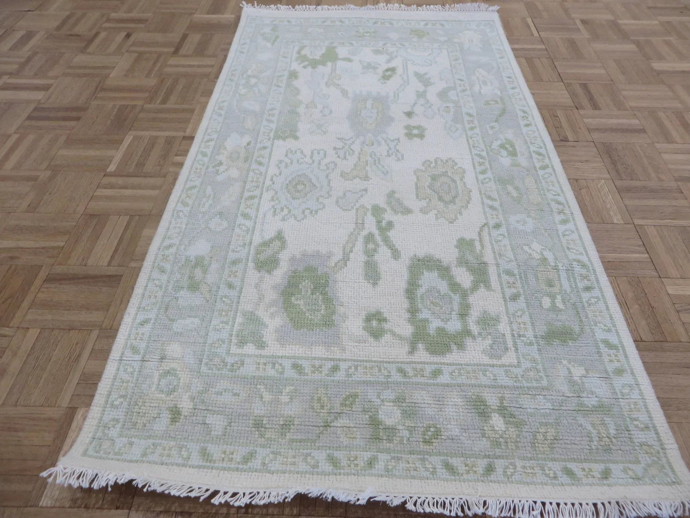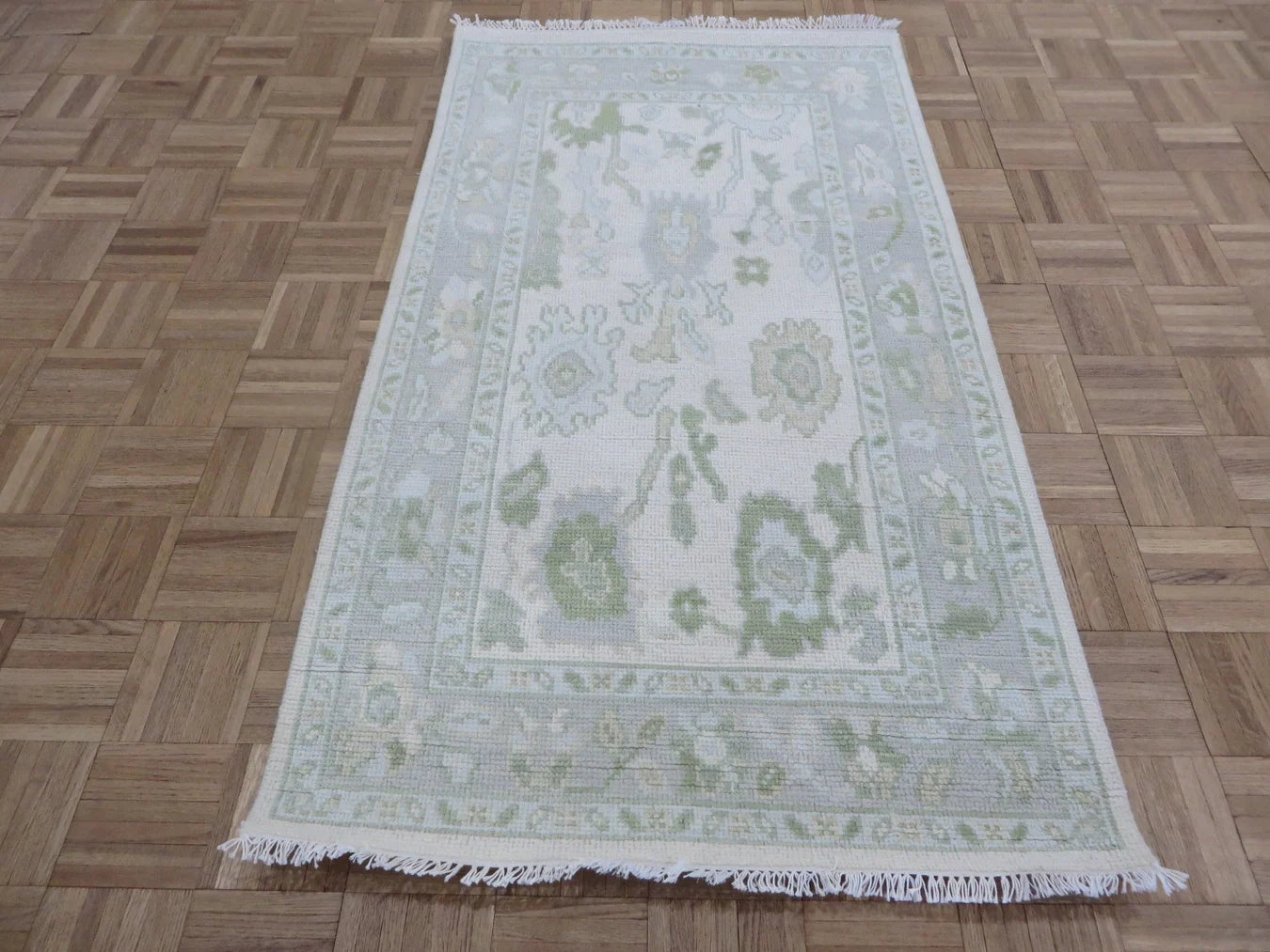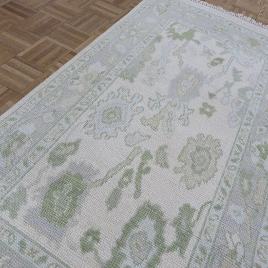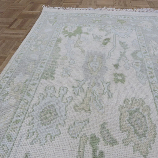 This modern, newly produced hand-knotted Oushak is expertly crafted in India using the Persian knot and composed of 100% hand-spun wool, naturally dyed with vegetable dyes. For custom sizing inquiries, please contact us directly.