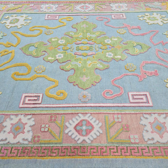 Each of our rugs is handmade in India from natural materials, using techniques passed down through generations. Because they are crafted by hand, every rug has slight inconsistencies or unique details that make it one of a kind. Sizes may vary by 1–3 inches in either direction, and colors may shift by 5–15% from what you see online. Motifs, borders, and patterns also scale with size, so the final piece may differ slightly from photos. These natural variations are part of authentic craftsmanship. All of our rugs are produced responsibly with no child labor, supporting the artisans who create them. To extend the life of your rug, we recommend using a felt rug pad.