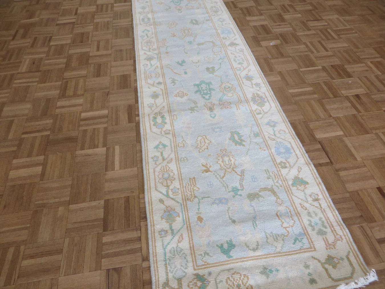 Made to order modern oushak rugs ship in about 90–120 days, with runners and custom sizes taking 120–150 days.