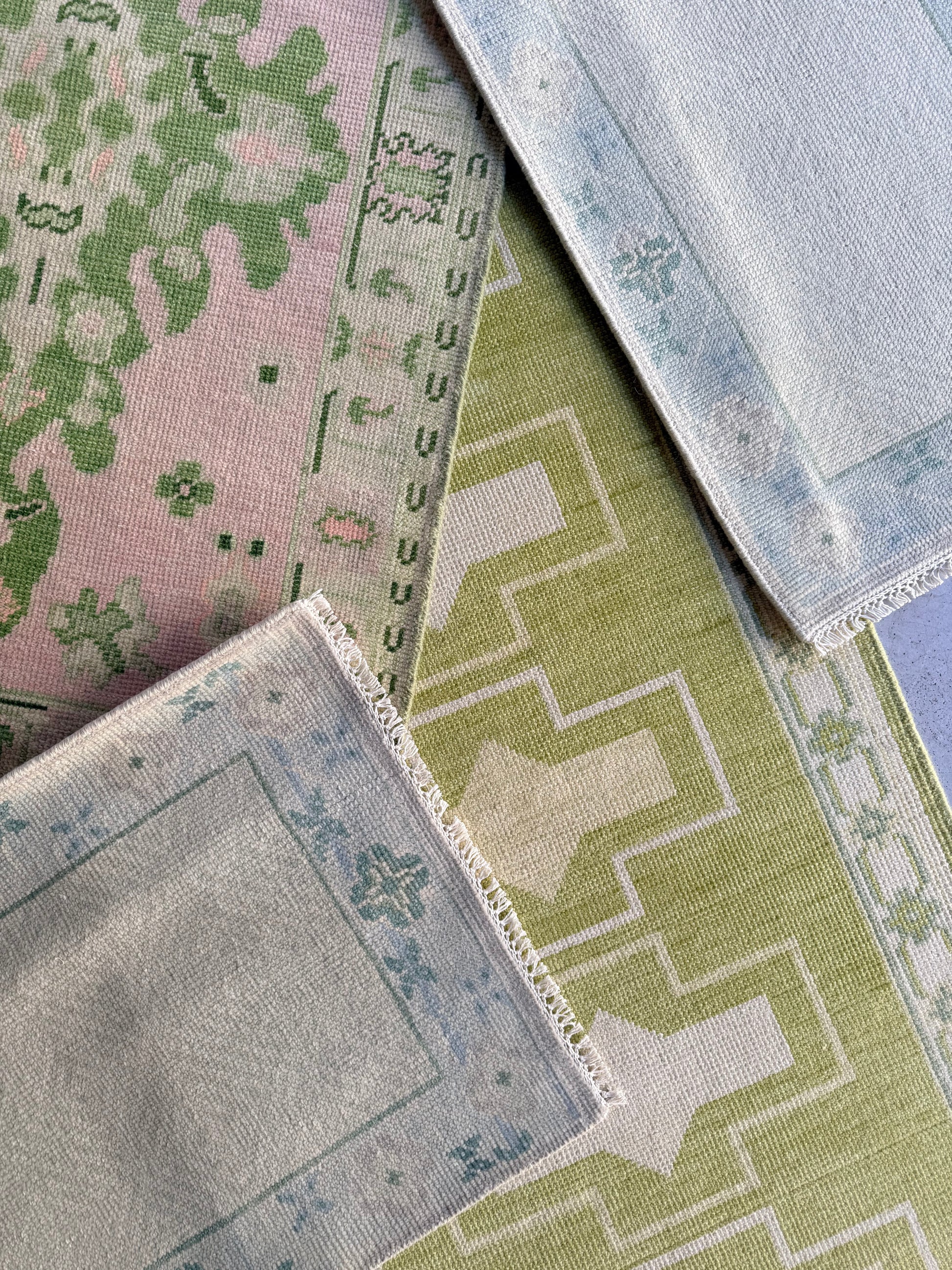 Our Modern Oushak Collection is hand-knotted with the highest quality New Zealand wool and brought to life by third-generation weavers in India who pour love and attention into every detail. Each rug is colored with natural vegetable dyes, giving it rich tones and timeless character. Because every piece is made to order, your rug will ship free within 90–120 days.