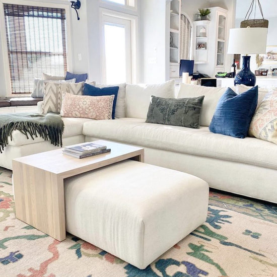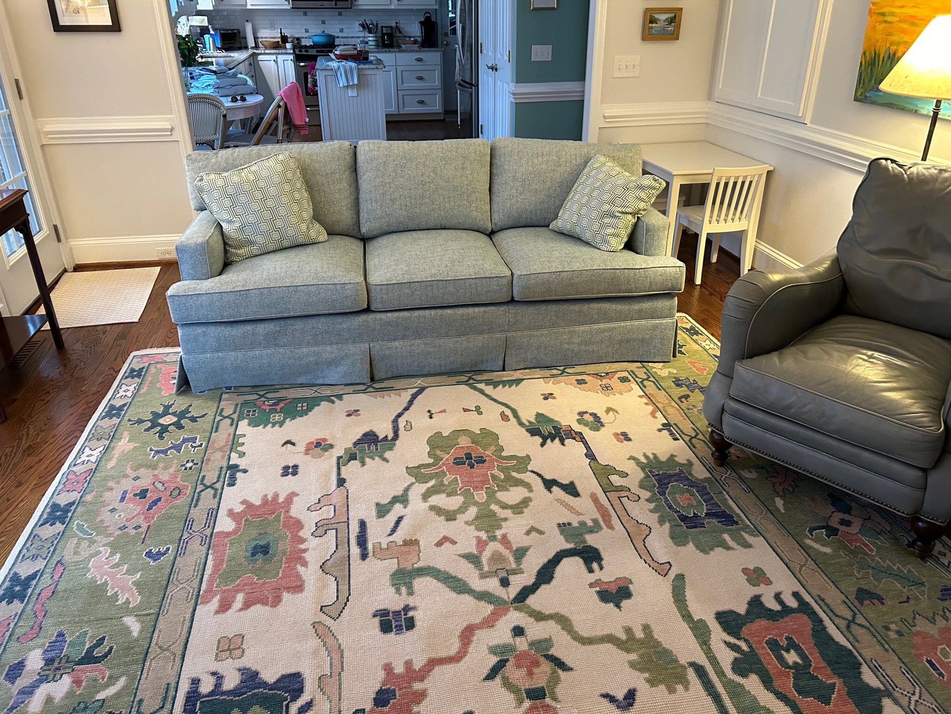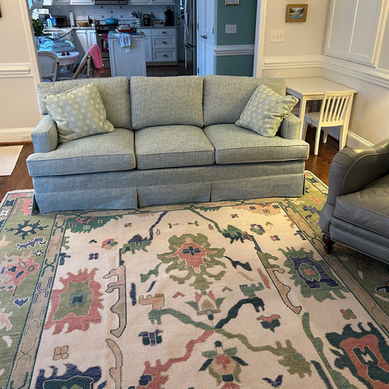 Our Modern Oushak Collection is hand-knotted with the highest quality New Zealand wool and brought to life by third-generation weavers in India who pour love and attention into every detail. Each rug is colored with natural vegetable dyes, giving it rich tones and timeless character. Because every piece is made to order, your rug will ship free within 90–120 days.