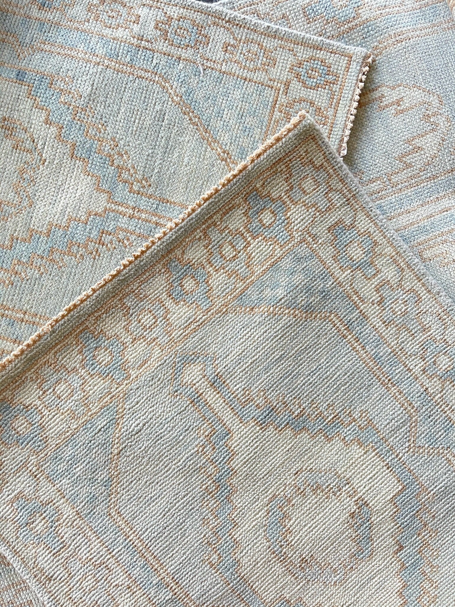 Our Modern Oushak Collection is hand-knotted with the highest quality New Zealand wool and brought to life by third-generation weavers in India who pour love and attention into every detail. Each rug is colored with natural vegetable dyes, giving it rich tones and timeless character. Because every piece is made to order, your rug will ship free within 90–120 days.