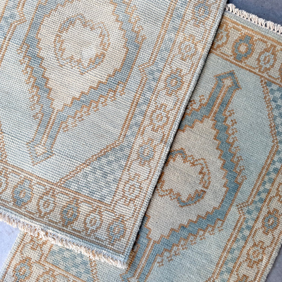 Each of our rugs is handmade in India from natural materials, using techniques passed down through generations. Because they are crafted by hand, every rug has slight inconsistencies or unique details that make it one of a kind. Sizes may vary by 1–3 inches in either direction, and colors may shift by 5–15% from what you see online. Motifs, borders, and patterns also scale with size, so the final piece may differ slightly from photos. These natural variations are part of authentic craftsmanship. All of our rugs are produced responsibly with no child labor, supporting the artisans who create them. To extend the life of your rug, we recommend using a felt rug pad.