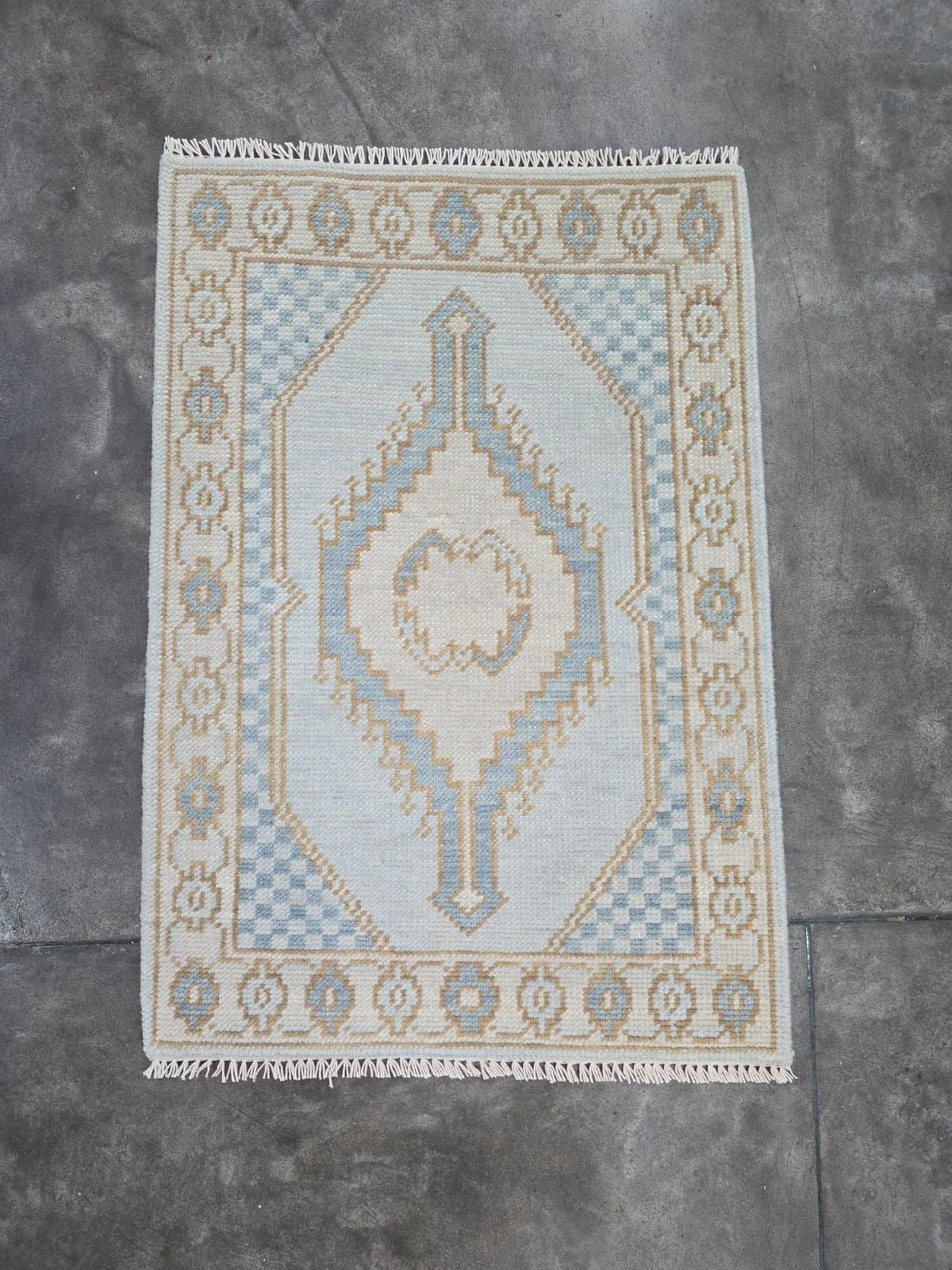 - New production, hand-knotted Modern Oushak rug composed of 100% wool made of natural and vegetable dyes.