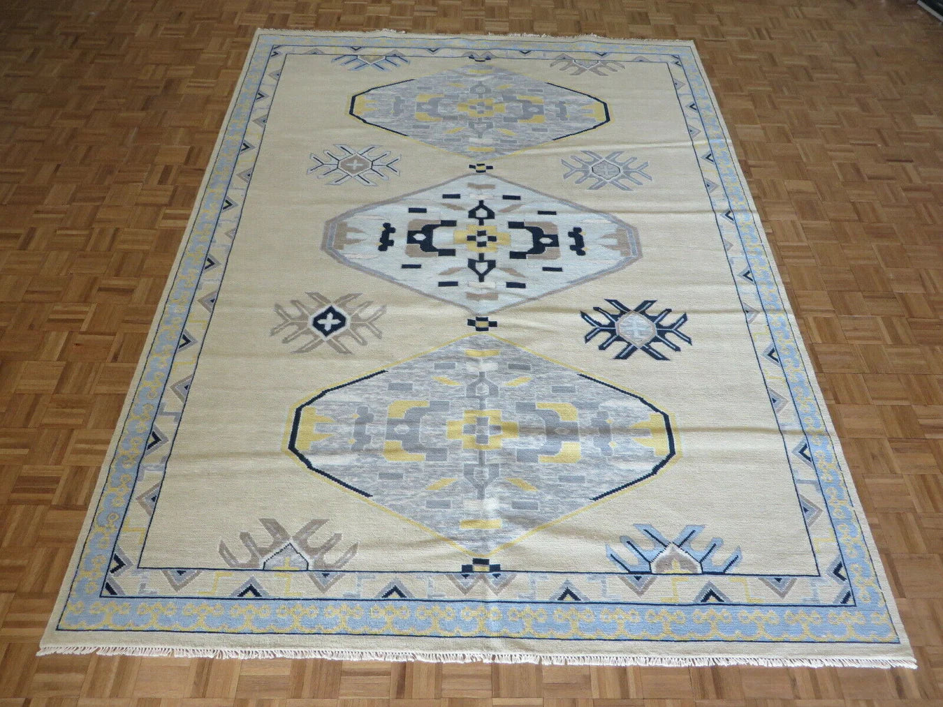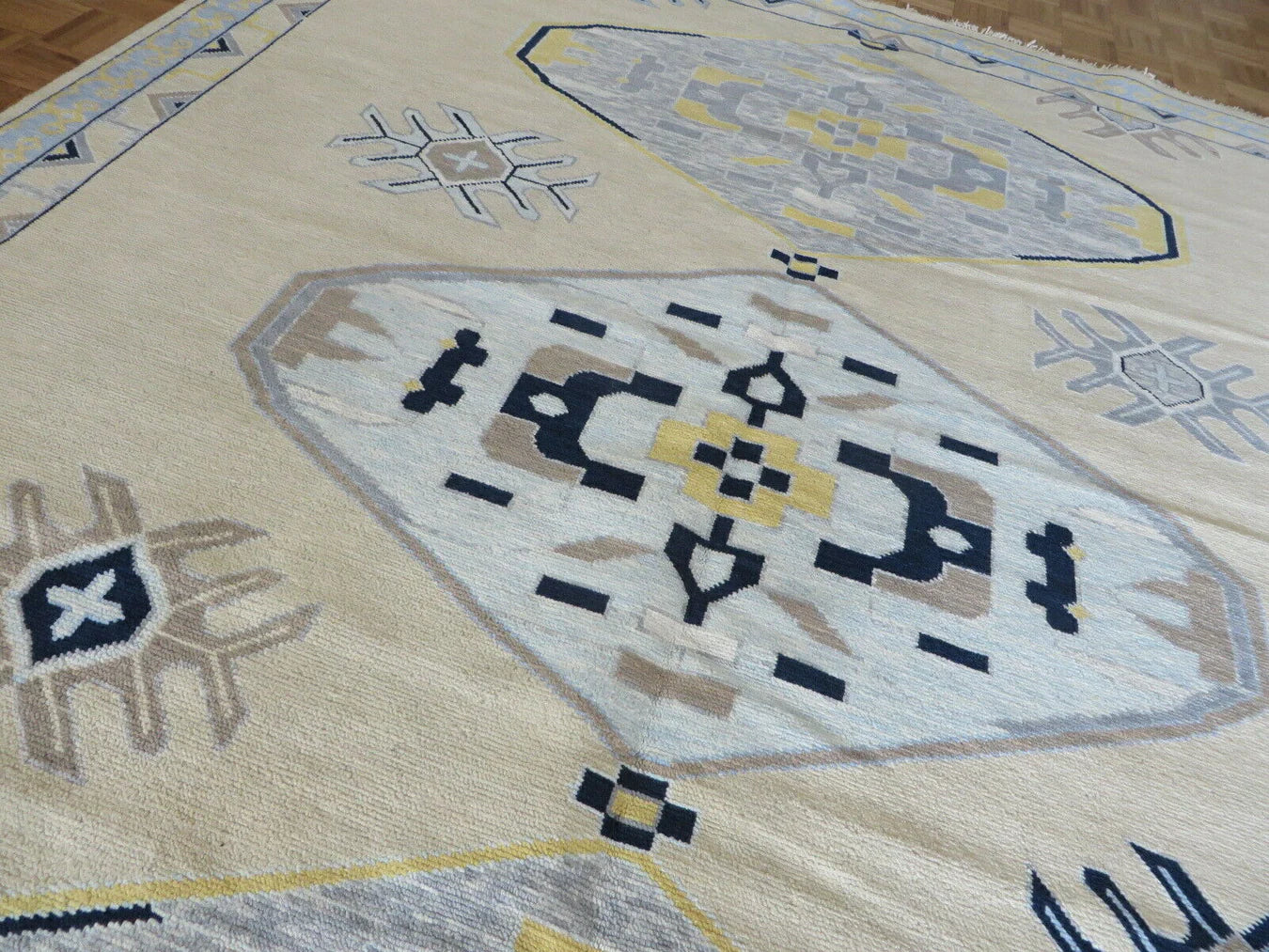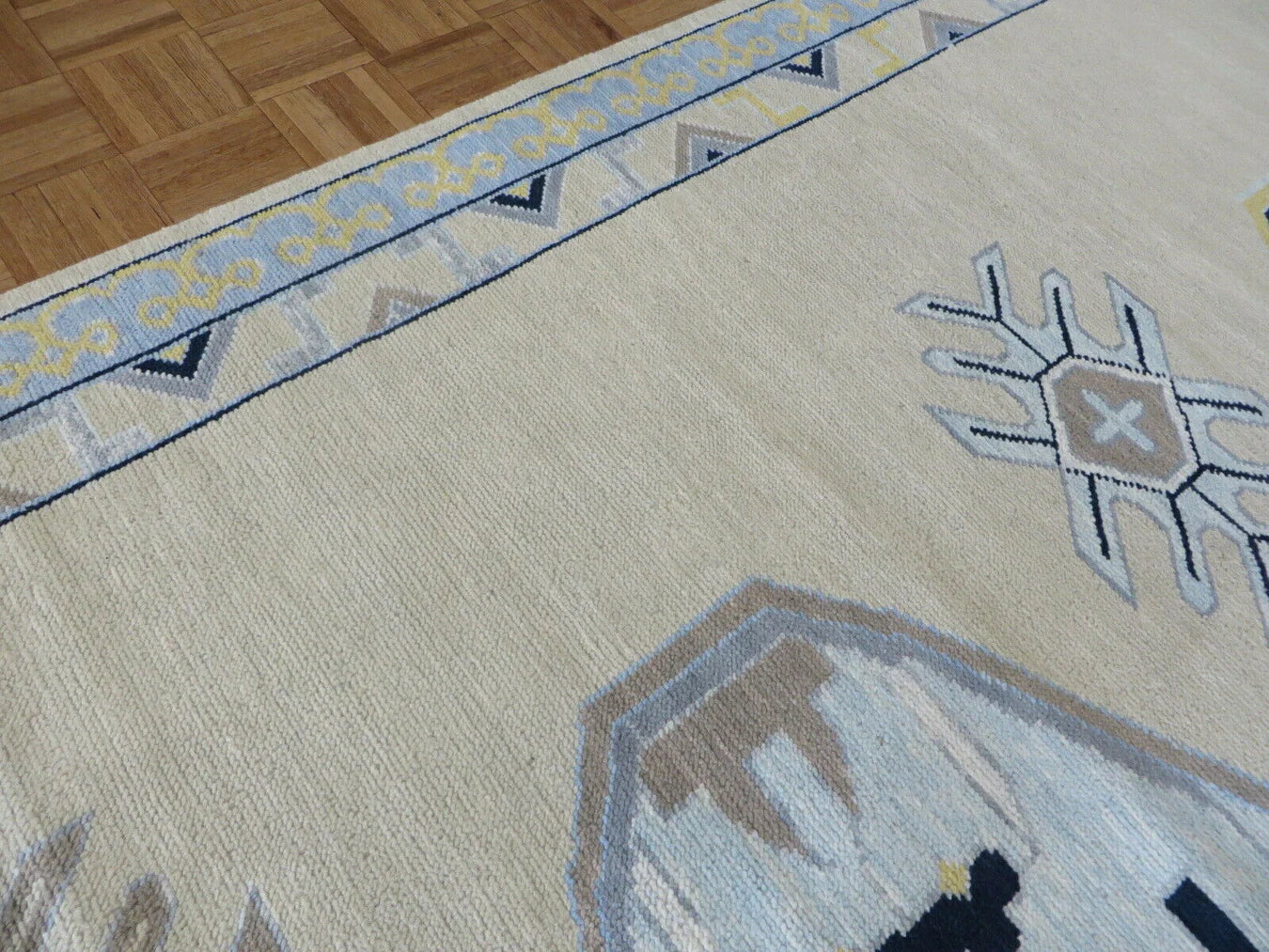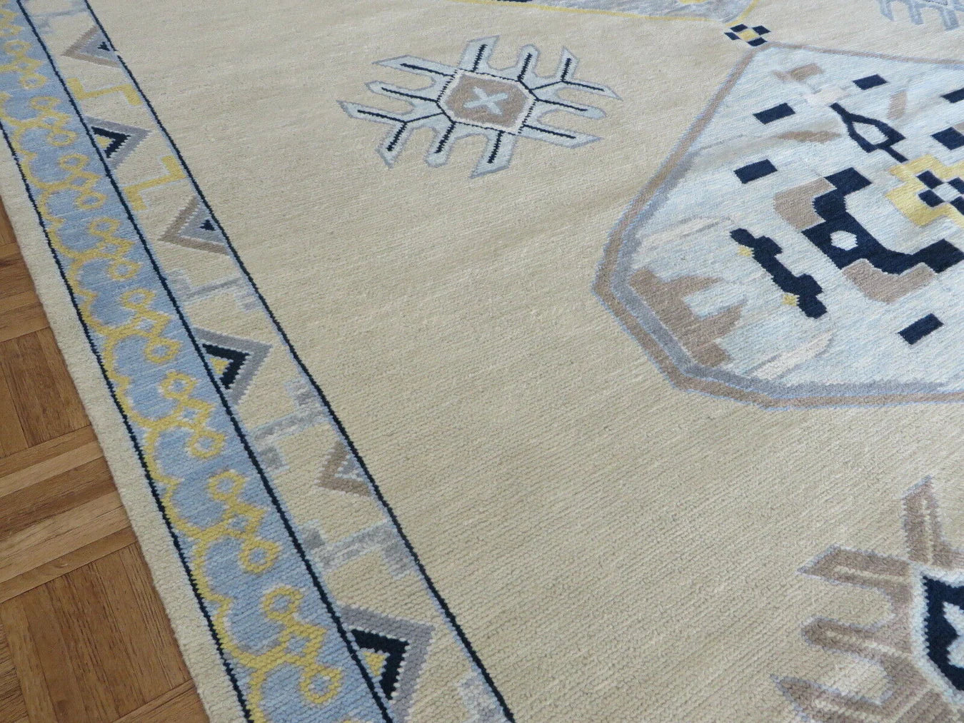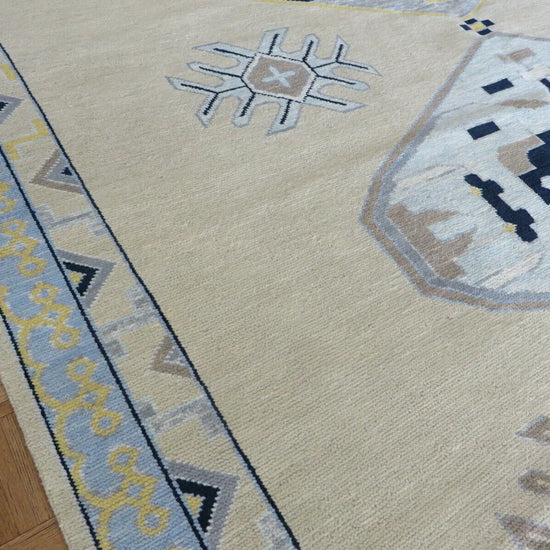 Each of our rugs is handmade in India from natural materials, using techniques passed down through generations. Because they are crafted by hand, every rug has slight inconsistencies or unique details that make it one of a kind. Sizes may vary by 1–3 inches in either direction, and colors may shift by 5–15% from what you see online. Motifs, borders, and patterns also scale with size, so the final piece may differ slightly from photos. These natural variations are part of authentic craftsmanship. All of our rugs are produced responsibly with no child labor, supporting the artisans who create them. To extend the life of your rug, we recommend using a felt rug pad.