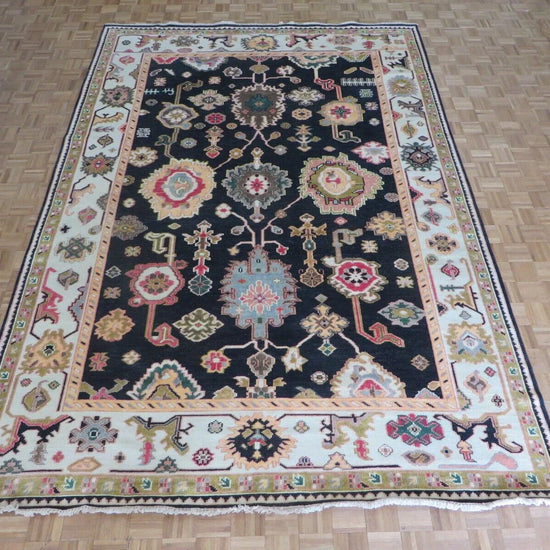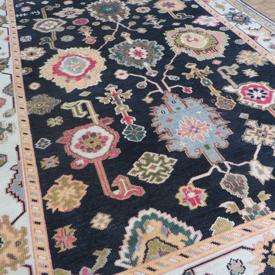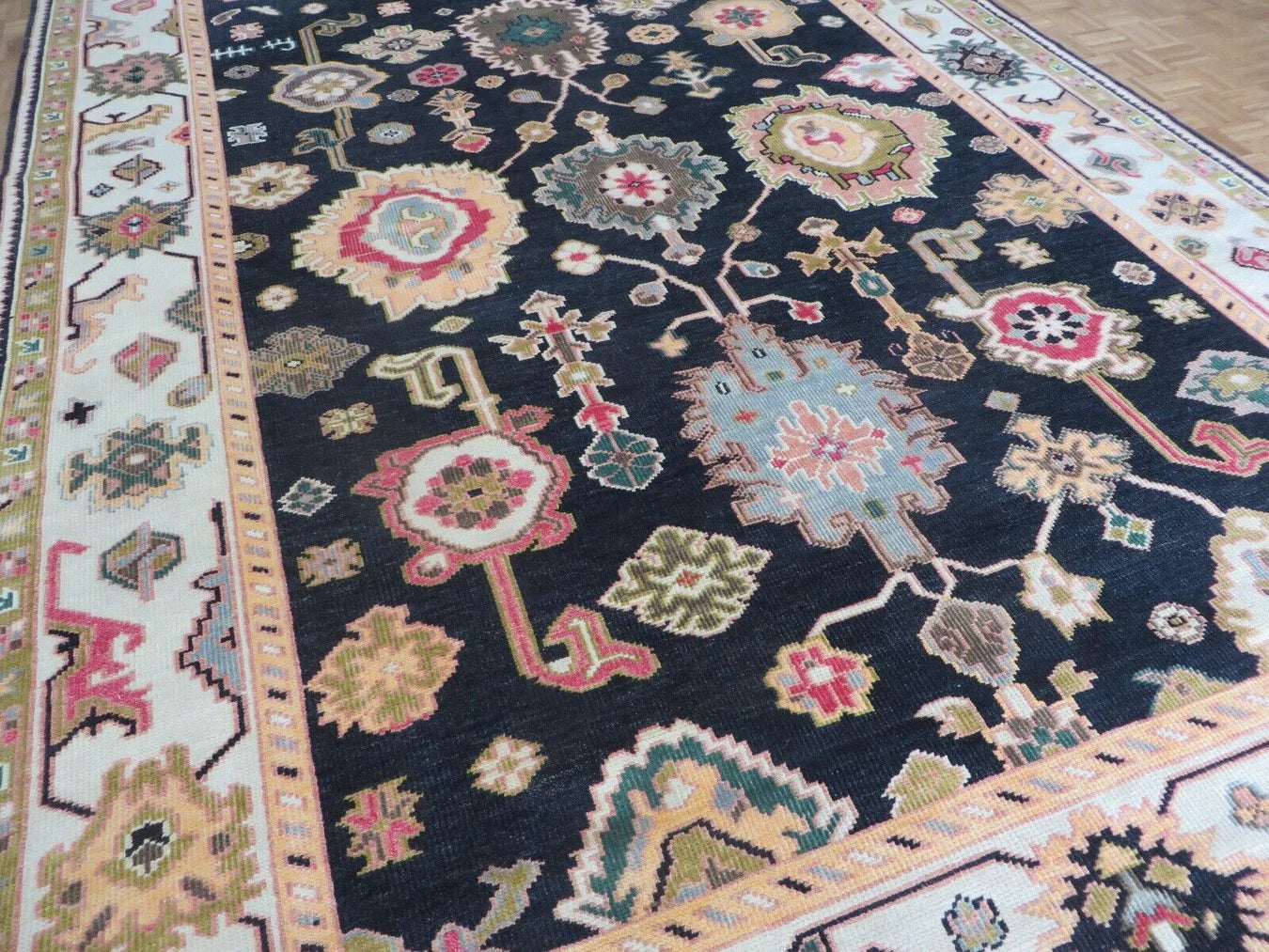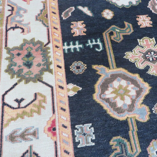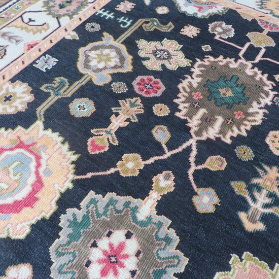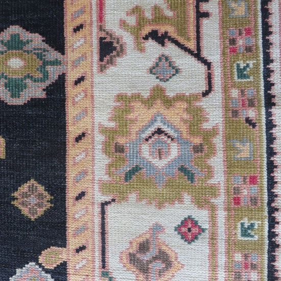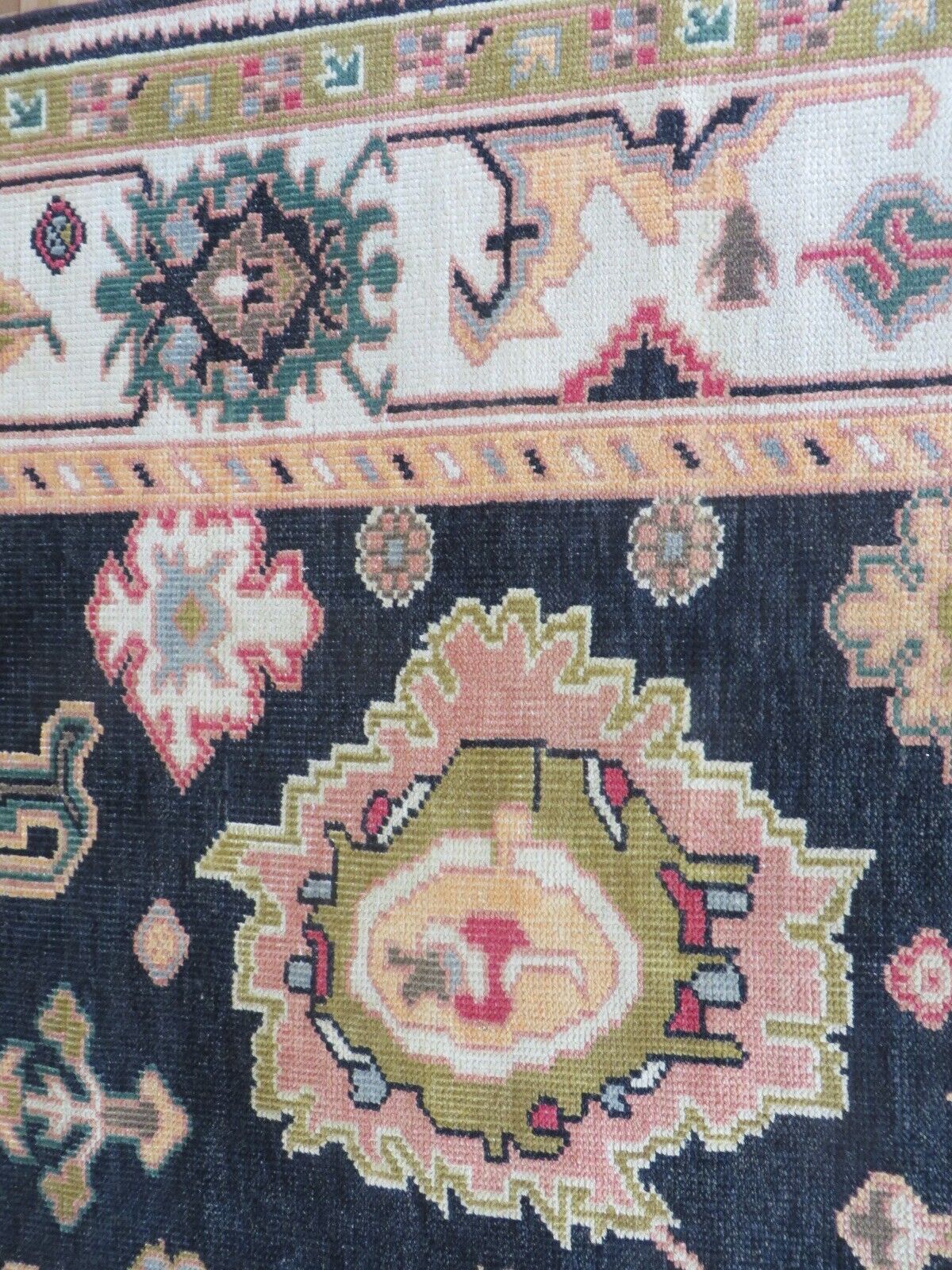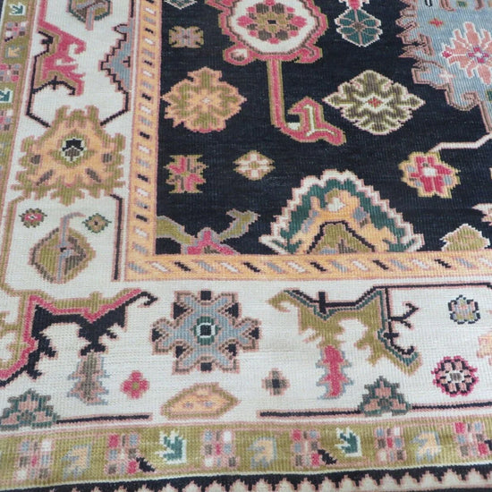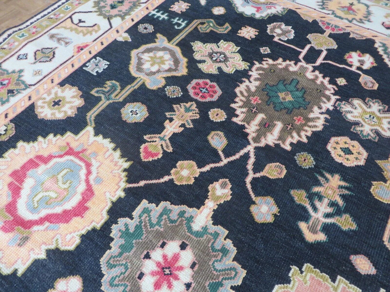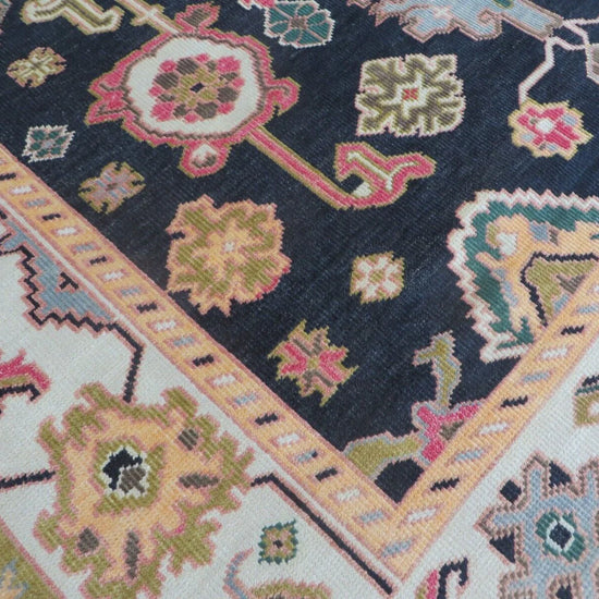 This modern, newly produced hand-knotted Oushak is expertly crafted in India using the Persian knot and composed of 100% hand-spun wool, naturally dyed with vegetable dyes. For custom sizing inquiries, please contact us directly.