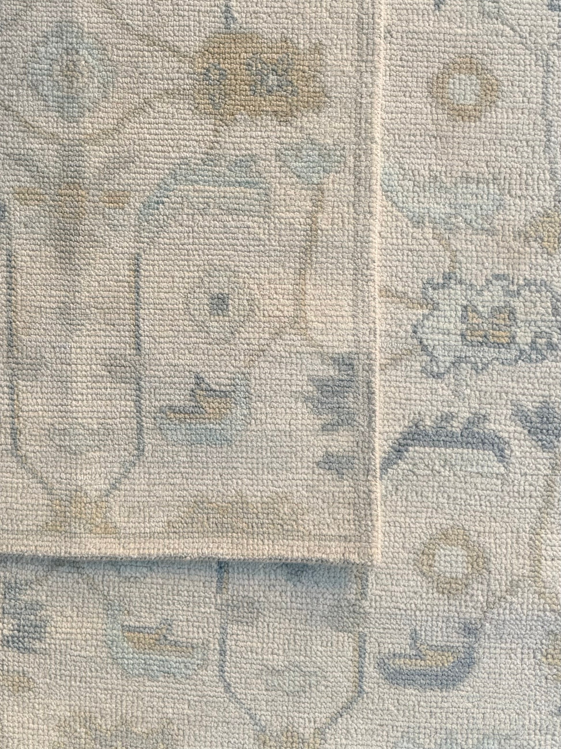 - New production, hand-knotted Modern Oushak rug composed of 100% wool made of natural and vegetable dyes.