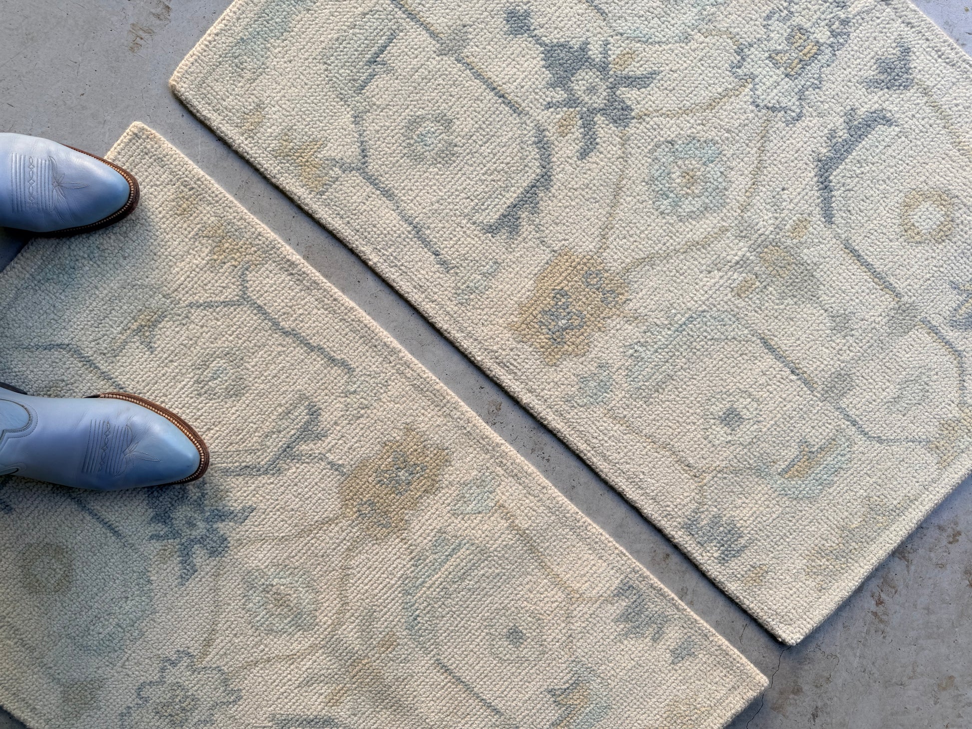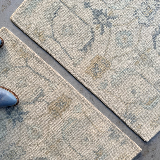 Each of our rugs is handmade in India from natural materials, using techniques passed down through generations. Because they are crafted by hand, every rug has slight inconsistencies or unique details that make it one of a kind. Sizes may vary by 1–3 inches in either direction, and colors may shift by 5–15% from what you see online. Motifs, borders, and patterns also scale with size, so the final piece may differ slightly from photos. These natural variations are part of authentic craftsmanship. All of our rugs are produced responsibly with no child labor, supporting the artisans who create them. To extend the life of your rug, we recommend using a felt rug pad.
