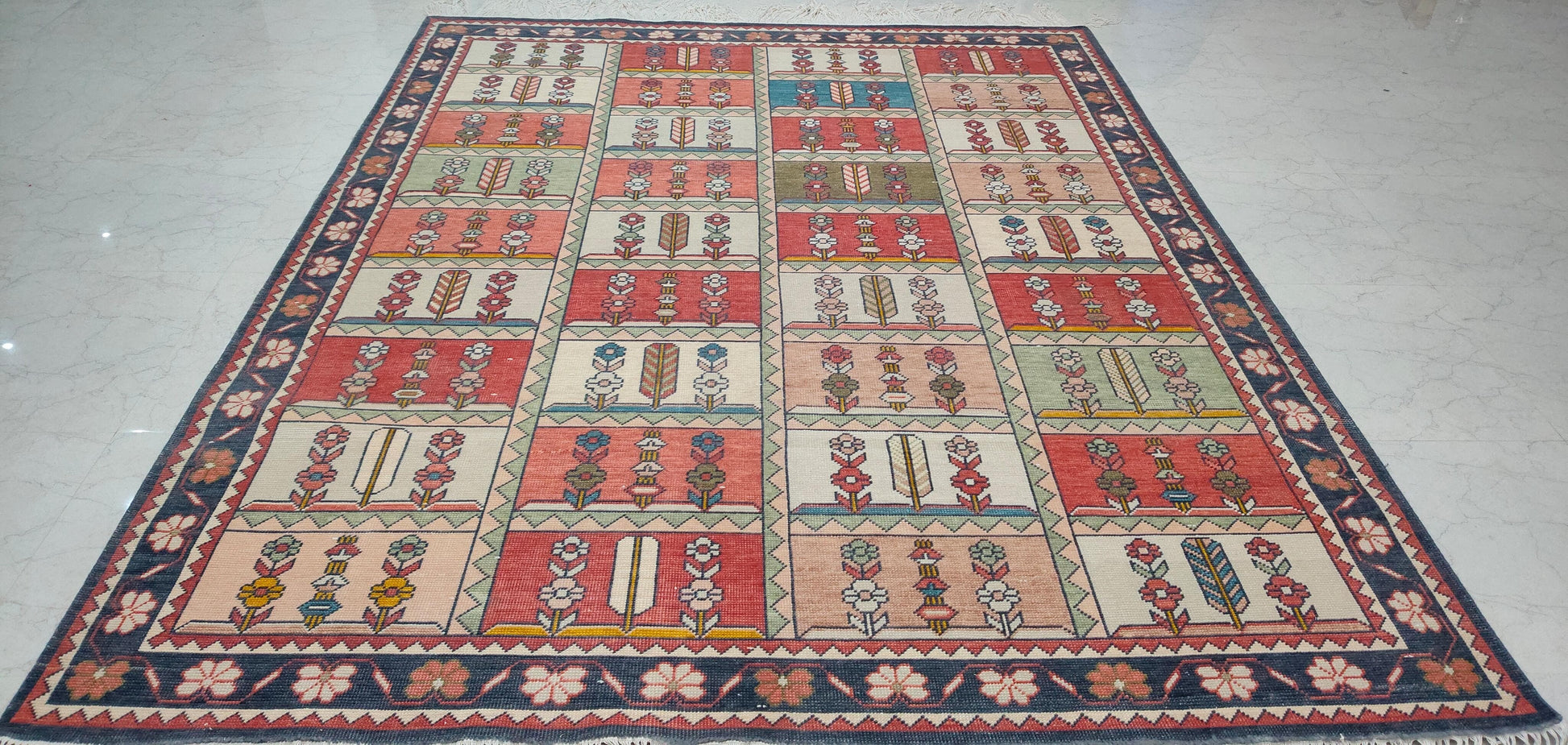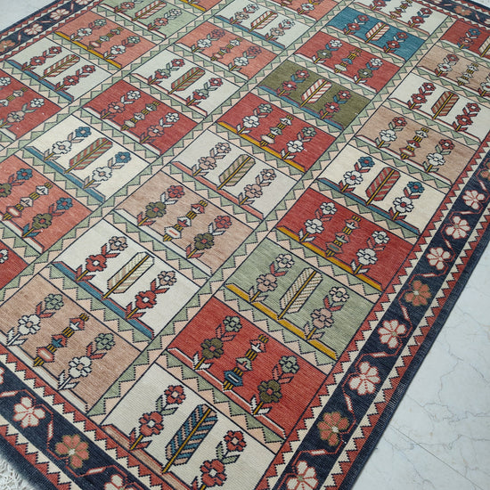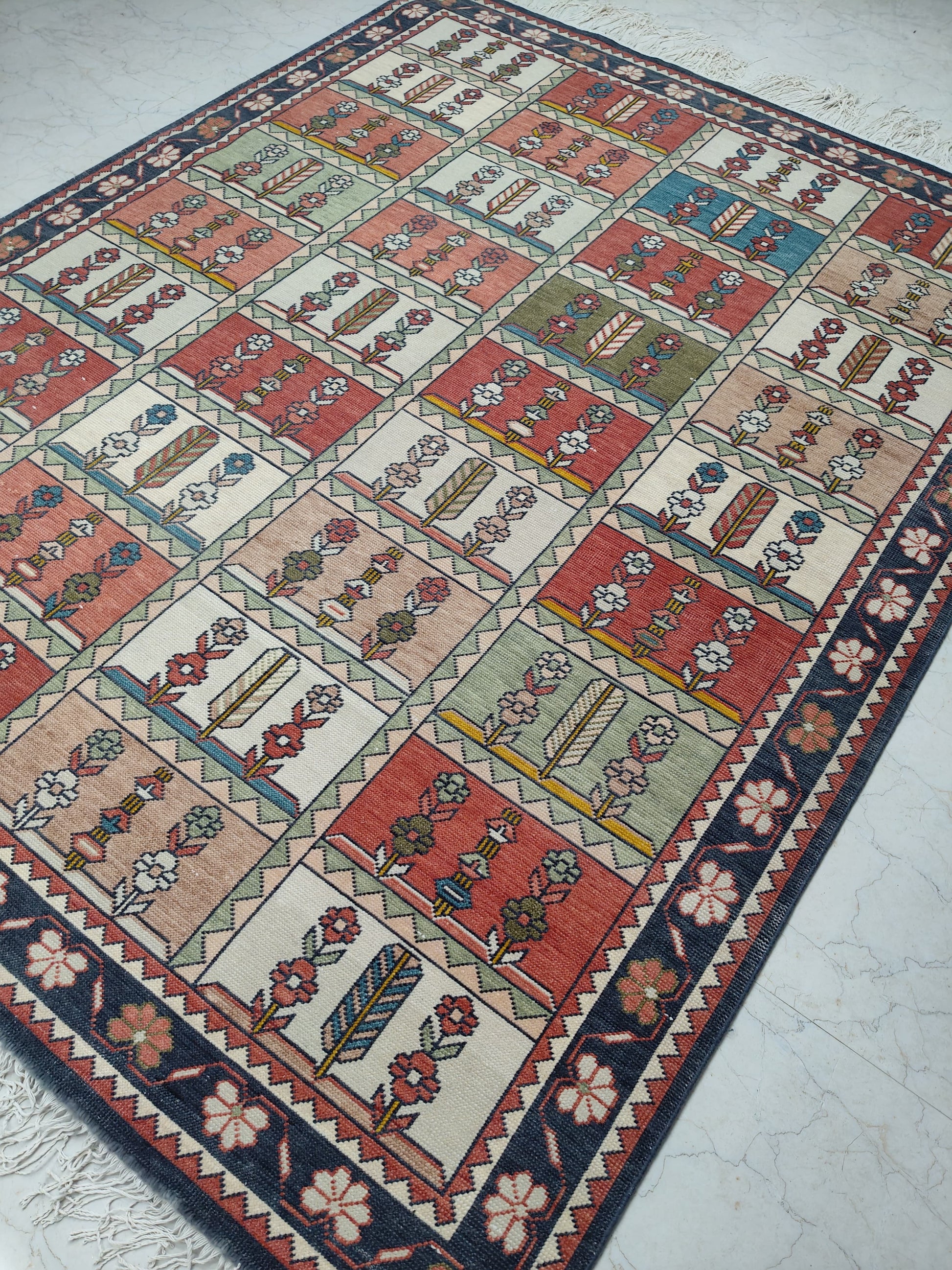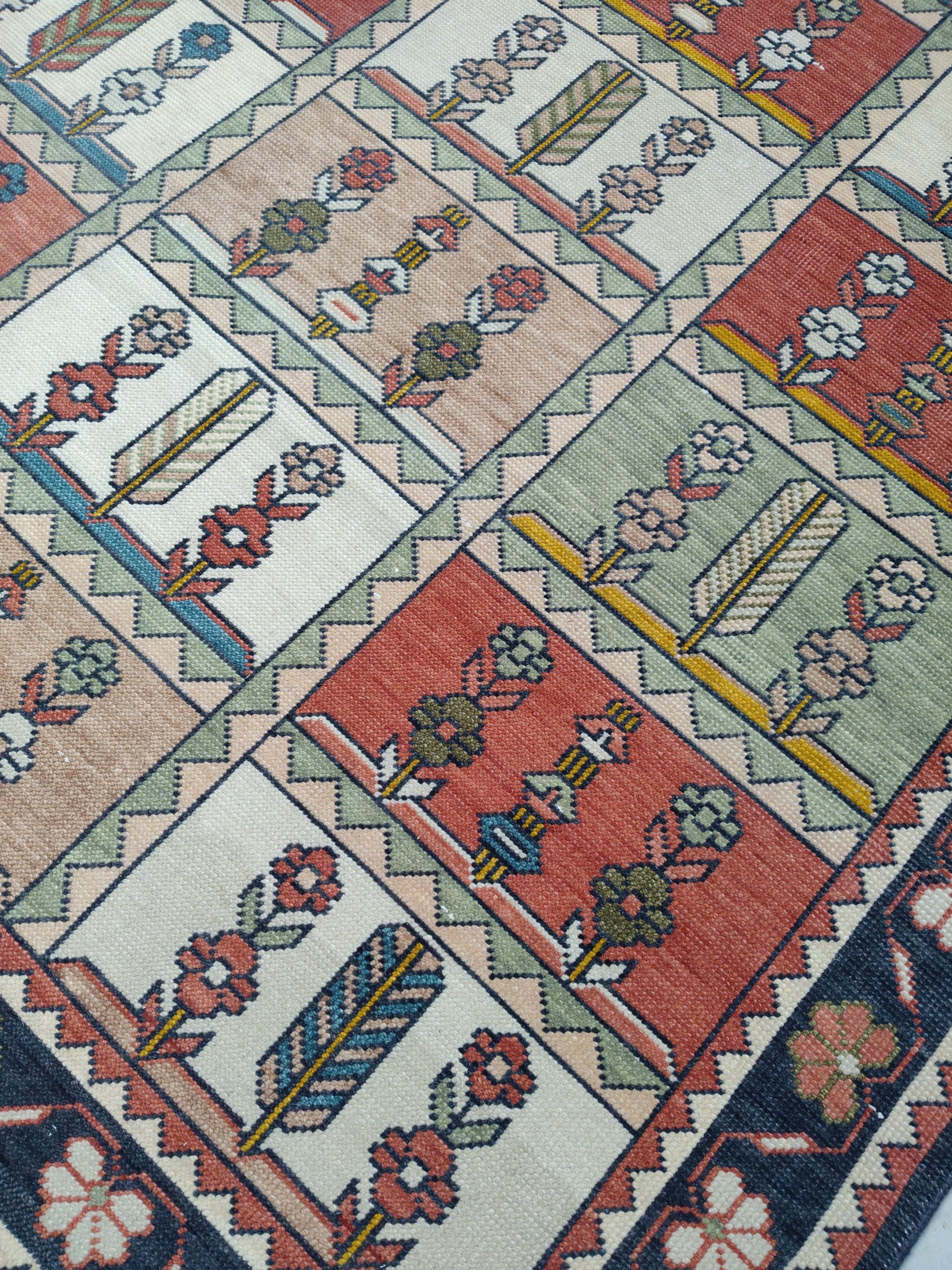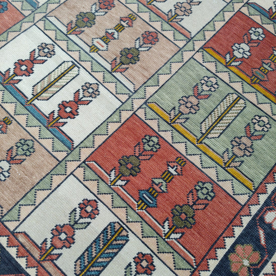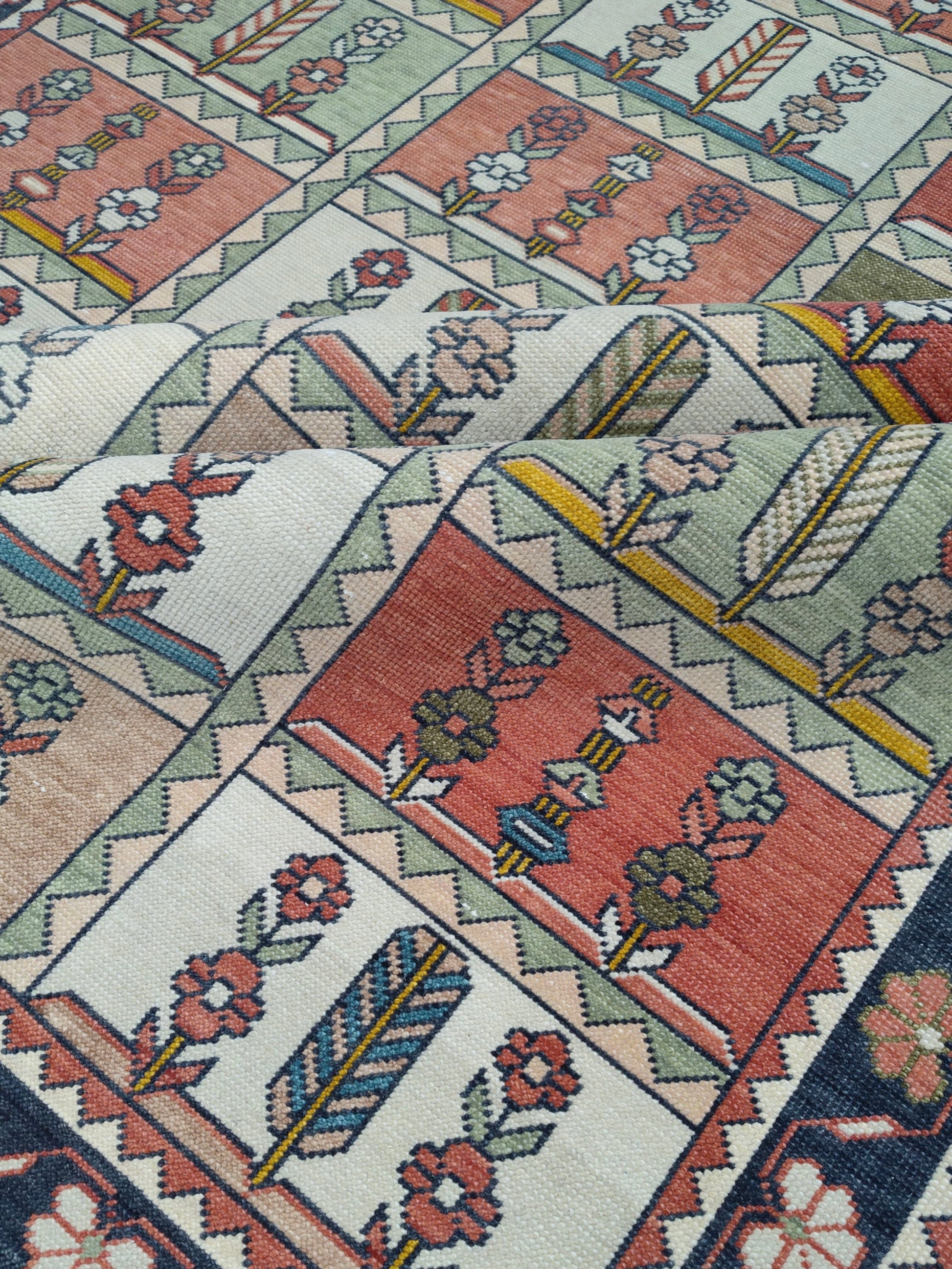 Each of our rugs is handmade in India from natural materials, using techniques passed down through generations. Because they are crafted by hand, every rug has slight inconsistencies or unique details that make it one of a kind. Sizes may vary by 1–3 inches in either direction, and colors may shift by 5–15% from what you see online. Motifs, borders, and patterns also scale with size, so the final piece may differ slightly from photos. These natural variations are part of authentic craftsmanship. All of our rugs are produced responsibly with no child labor, supporting the artisans who create them. To extend the life of your rug, we recommend using a felt rug pad.